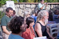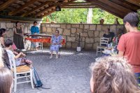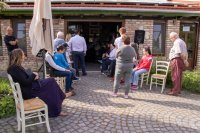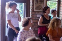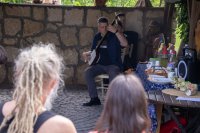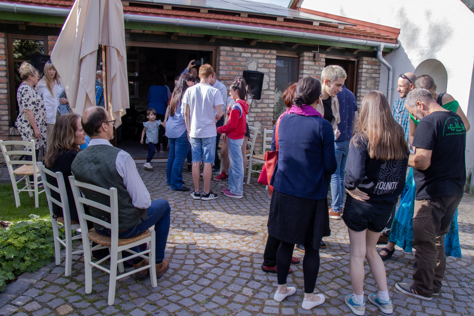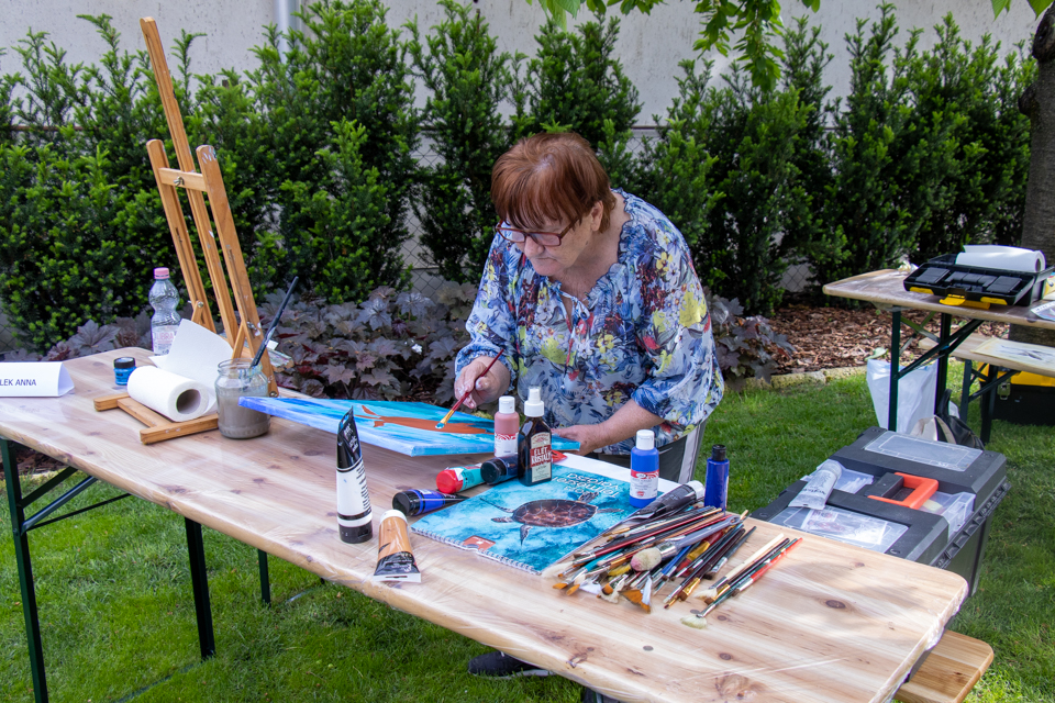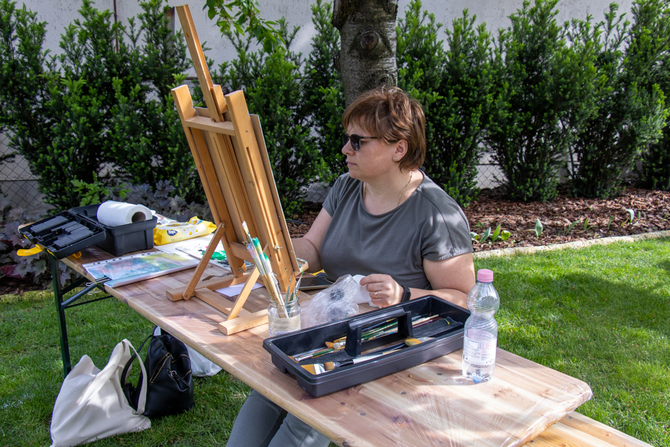 - 2024. május 1-jei megnyitó napján a Varázsecset Festőkör tagjai élményfestést tartottak a Galéria udvarán.