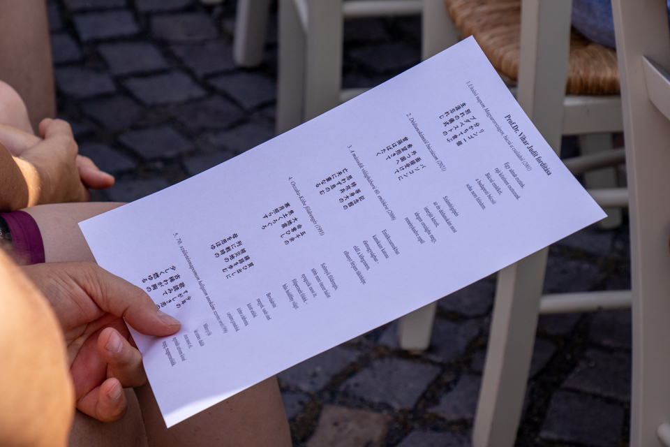 A rendezvénysorozattól a 2024. július 28-án megtartott „maratoni” JAPÁNFILM-VETÍTÉSSEL búcsúztunk. - 2024. július 5-én este 21 órától a mányi MokaSzínház társulata mutatkozott be: „AZ EZREDIK ÉJSZAKA” című bájosan tartalmas kamaradarabot MÓKA JÁNOS rendezésében, HEIM ZSUZSANNA díszletei között, GOLDSMANN TAMÁS zenei közreműködésével láthattuk.